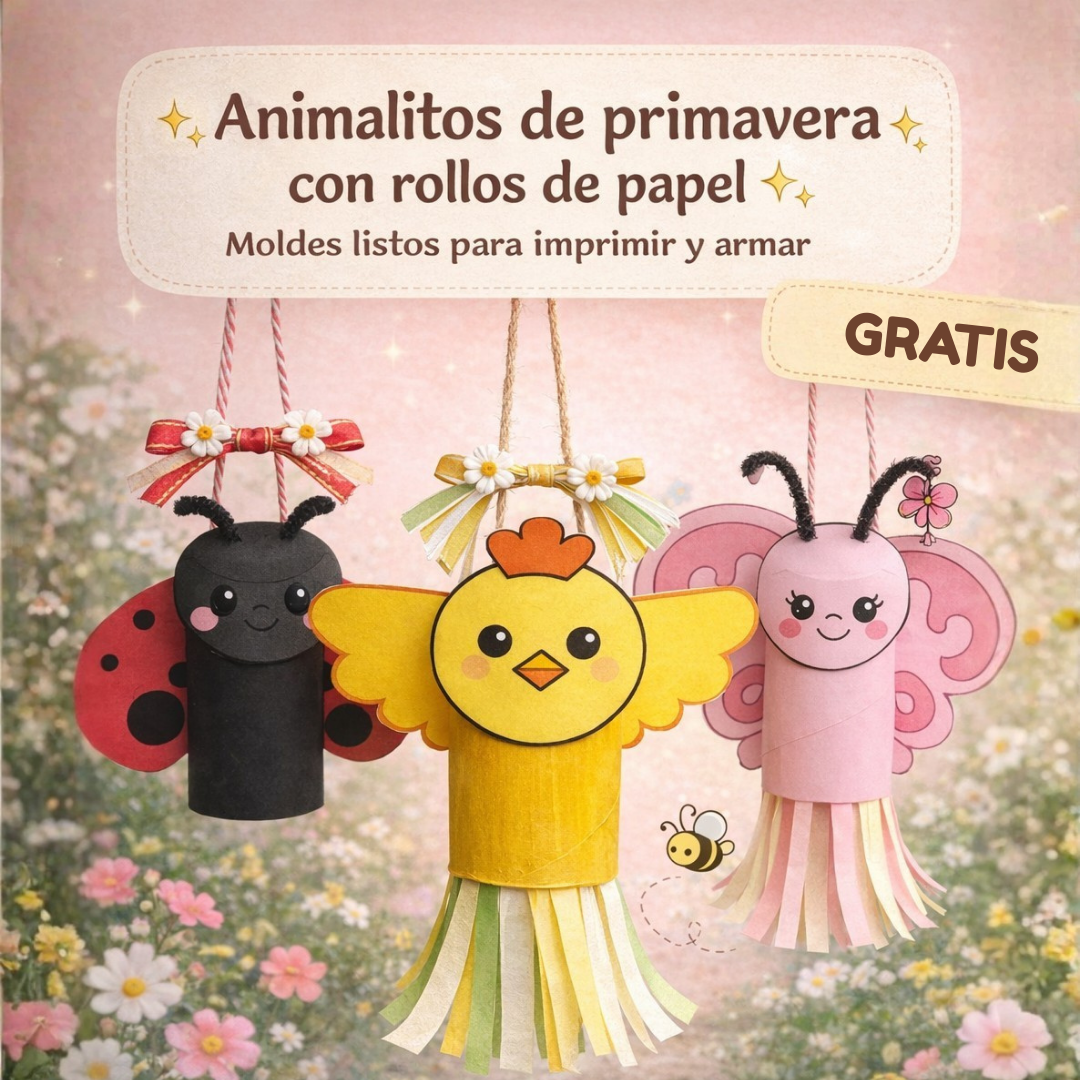 🌼 Moldes de animalitos de primavera con rollos de papel higiénico (PDF imprimible)